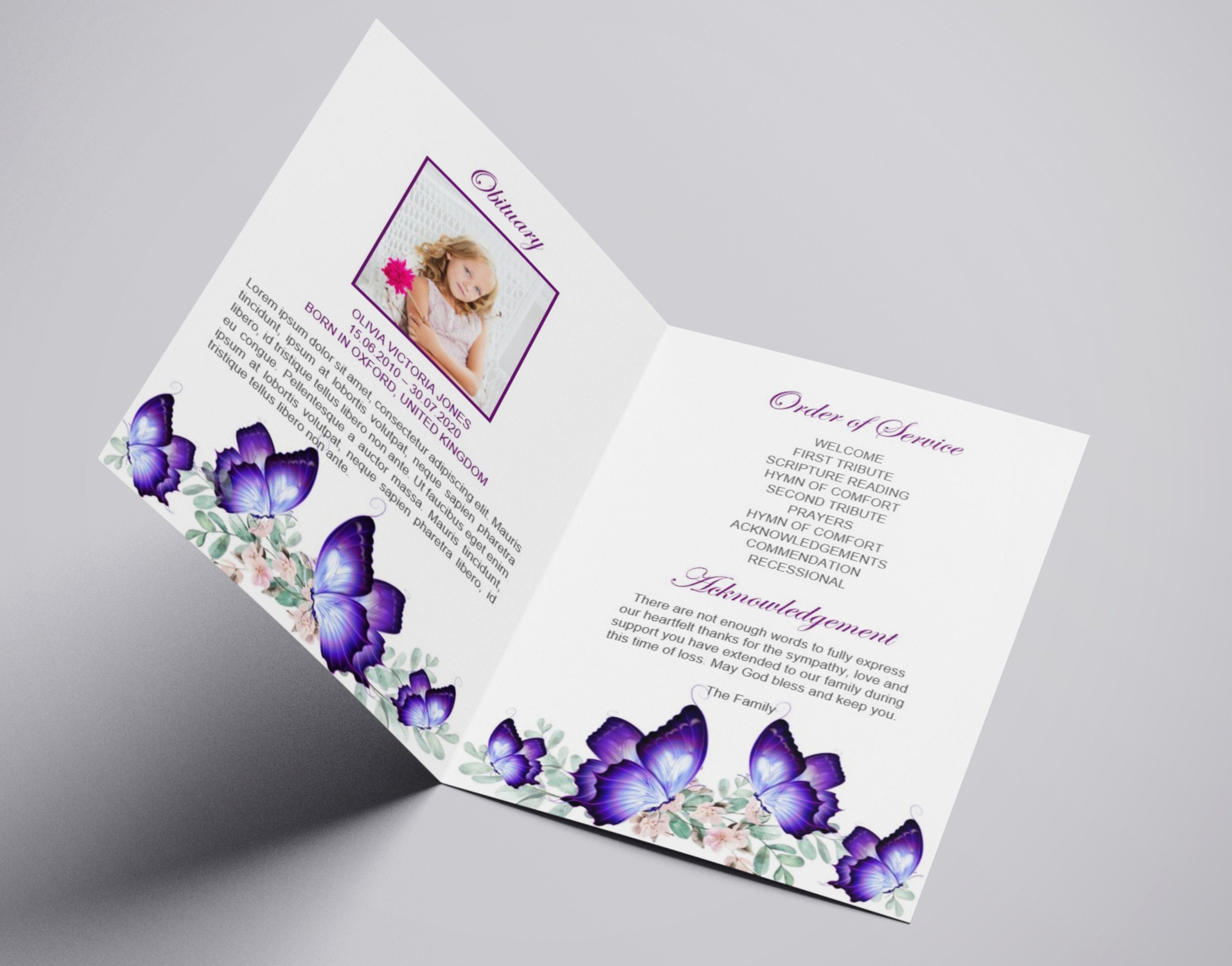 Purple Butterflies Memorial Program Template Funeral Design Studio Butterfly Funeral Program Template Thousands of stock photos and easy to use tools. Perfect for a loved one's memorial service. funeral program template for word with butterflies. Instant download, easy to edit in microsoft word and. bifold (single fold) beautiful butterfly funeral program template features pastel colors and serene butterflies. customize this design with your photos and text. The inside of. Butterfly Funeral Program Template.